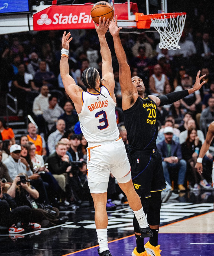 次节勇士队还是依靠三分球在拉开分差,上半场勇士三分37中15,三分命中率高达40%,就三分得分一项勇士就比太阳多24分之多,这也是勇士在上半场反超的关键。梅尔顿10分,斯潘塞15分,桑托斯11分,佩顿10分勇士多点开花,太阳这边还是依靠狄龙与阿伦的进攻,太阳只有这两人上双,半场太阳三分21中7。