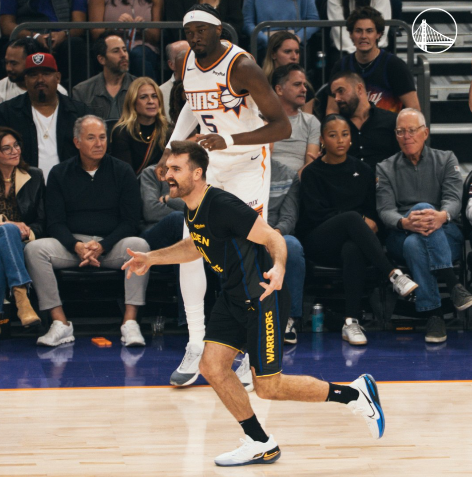 这场比赛勇士用了一套先发五小,科尔就希望用空间来打太阳,太阳这边虽然有尺寸优势但他们也没有一定要狠揍勇士内线,马威首节3中3拿6分5篮板1盖帽,狄龙依旧是太阳的主攻点他首节拿到8分。斯潘塞与小佩顿连续命中三分,这就是科尔要的,首节勇士就命中7个三分球,首节打完勇士25-29落后太阳。